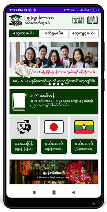 စာကြည့်တိုက်အပ်တွင် ဂျပန်မှာ Skilled Worker လုပ်မယ်၊ (သို့) ကျောင်းဆက်တက်မယ်၊ (သို့) ဂျပန်စာပေကို ရင်းနှီးကျွမ်းကျင်ချင်တယ် ဆိုသူများအတွက် အကူအညီဖြစ်စေရာ လုပ်ဆောင်ချက်များစွာ ထည့်သွင်းပေးထားပါသည်။